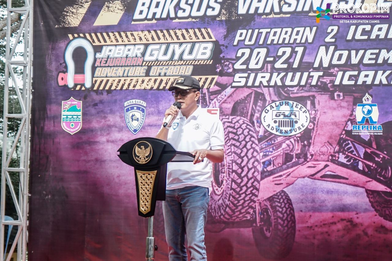 inijabar.com, Ciamis- Bupati Ciamis Herdiat Sunarya membuka kegiatan Baksos vaksinasi Covid-19 dan Kejuaraan Jabar Guyub Adventure Offroad Putaran 2 di Sirkuit Offroad Icakan, Kecamatan Baregbeg, Kabupaten Ciamis, Sabtu (20/11/2021), siang.